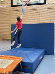 In diesem Jahr fand der traditionelle Basketball-Aktionstag für die 3.Klassen am Dienstag nach den Faschingsferien statt. Bürgermeister Thomas Stark, Markus Böhme (Vorstand der SG Poing) und Frau Weinstock vom Förderverein richteten Grußworte an die Teilnehmer und Teilnehmerinnen und wünschten allen einen fröhlichen Vormittag. Organisiert von Jakob Stejpanovic nahmen sich auch in diesem Jahr wieder Trainer und Spieler der SG Poing Basketball Zeit, unseren Schülerinnen und Schülern der 3.Klassen eine Einführung in die Sportart Basketball zu geben. Nach einem kurzen Aufwärmtraining übten sich die Kinder an verschiedenen Stationen in Koordination, Wurf, Ballhandling, Passen und „Körbe versenken“. Stets motiviert und positiv verstärkt von den Trainerinnen und Trainern der SG. Nach einer wohlverdienten Pause konnten die Kinder im Anschluss das Gelernte in verschiedenen spielerischen Wettkämpfen unter Beweis stellen und kamen noch einmal richtig ins Schwitzen. Begleitet wurde die Veranstaltung von den Schulsanitäterinnen und Schulsanitätern der APS. Danke für eure Unterstützung! Ein sehr harmonischer und aktiver Vormittag in entspannter sportlicher Atmosphäre. Vielen Dank an die Trainerinnen und Trainer sowie die Betreuerinnen und Betreuer der SG Poing Basketball für das tolle ehrenamtliche Engagement! Wer Lust auf (mehr) Basketball bekommen hat findet unter https://sg-poing.de zahlreiche Trainingsangebote. Aktionen wie der Basketballaktionstag bereichern unser Schulleben. Deshalb freuen wir uns sehr über die finanzielle Unterstützung des Fördervereins und sagen: „Herzlichen Dank!“.