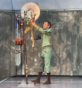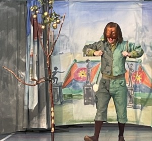 Am 28. Januar gastierte das Theater Maskara bei uns in der Anni-Pickert-Schule und spielte für die Schülerinnen und Schüler das Märchen „Der goldene Vogel“. Es beginnt damit, dass vom kostbarsten Baum des Königs eines Tages ein goldener Apfel fehlt. Der jüngste Sohn findet heraus, dass ein goldener Vogel den Apfel gestohlen hat. Diesen Vogel muss der König haben! Und so schickt er einen Sohn nach dem anderen los, diesen zu finden. Während die beiden älteren Brüder es sich in einem lustigen Gasthaus gut gehen lassen, gelingt es dem jüngsten Sohn schließlich mit der Hilfe eines geheimnisvollen Fuchses, eine schöne Prinzessin, ein goldenes Pferd, den goldenen Vogel und den goldenen Apfel wieder in das Königreich zu bringen und schließlich sogar noch den Fuchs von seinem Zauber zu erlösen. Alle diese Rollen wurden von nur einem Schauspieler dargestellt: Moise Schmidt. Dieser verwandelte sich während des Stücks mit Hilfe kunstvoll in Handarbeit angefertigter Holzmasken, seiner Gestik, Mimik und Aussprache in Sekundenschnelle von einer Figur in die andere. Er spielte die Musik live ein und veränderte während der Erzählpassagen ganz nebenbei auch noch das Bühnenbild. Und während sich die jüngeren Zuschauer von der Geschichte mitreißen ließen und den jungen Königsohn lautstark mit guten Ratschlägen versorgten, beobachteten die älteren Kinder gebannt die Verwandlungen und Aktivitäten des Künstlers.