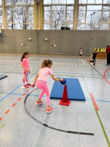 Mit viel Begeisterung und Bewegungslust testeten die Kinder ihre Handballkünste. An verschiedenen Stationen konnten sie werfen, passen, dribbeln und natürlich auch Tore erzielen. Dabei standen der Spaß an der Bewegung und das gemeinsame Erleben im Vordergrund.