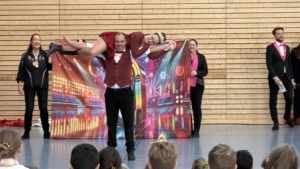 Alle Schüler von der ersten Klasse bis zu unseren Vorbereitungsklassen waren begeistert und unterstützten die Artisten mit lautstarkem Applaus. Wir sahen nicht nur gekonnte tänzerische Einlagen, sondern auch beachtliche akrobatische Darbietungen.