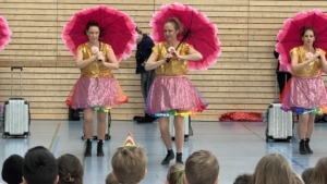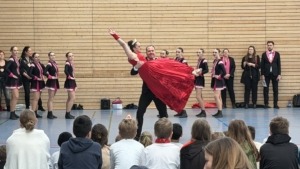 Alle Schüler von der ersten Klasse bis zu unseren Vorbereitungsklassen waren begeistert und unterstützten die Artisten mit lautstarkem Applaus. Wir sahen nicht nur gekonnte tänzerische Einlagen, sondern auch beachtliche akrobatische Darbietungen.
