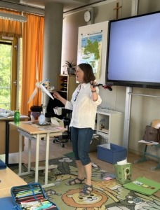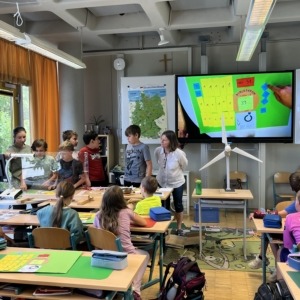 Am 18. und am 23.7.25 erklärte Frau Brombacher vom Bund Naturschutz  Zorneding uns viel über das Thema „Windkraft“ als erneuerbare Energie. Anhand eines Windrad – Modells, zeigte sie uns die Teile des Windrades. Inklusive der Rotorblätter kann ein Windrad bis zu 240 Meter hoch sein. Sie berichtete auch über den schwierigen Transport der riesigen Teile bis zum endgültigen Standort.