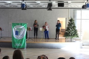 Auch in diesem Jahr wurde unsere Schule erneut als Umweltschule in Europa mit zwei Sternen ausgezeichnet. Die Übergabe des Banners und der Urkunde fand am 10.12.25 in einem festlichen und musikalischen Rahmen statt. Zu diesem Anlass waren die Klassensprecherinnen und Klassensprecher aller Klassen anwesend.